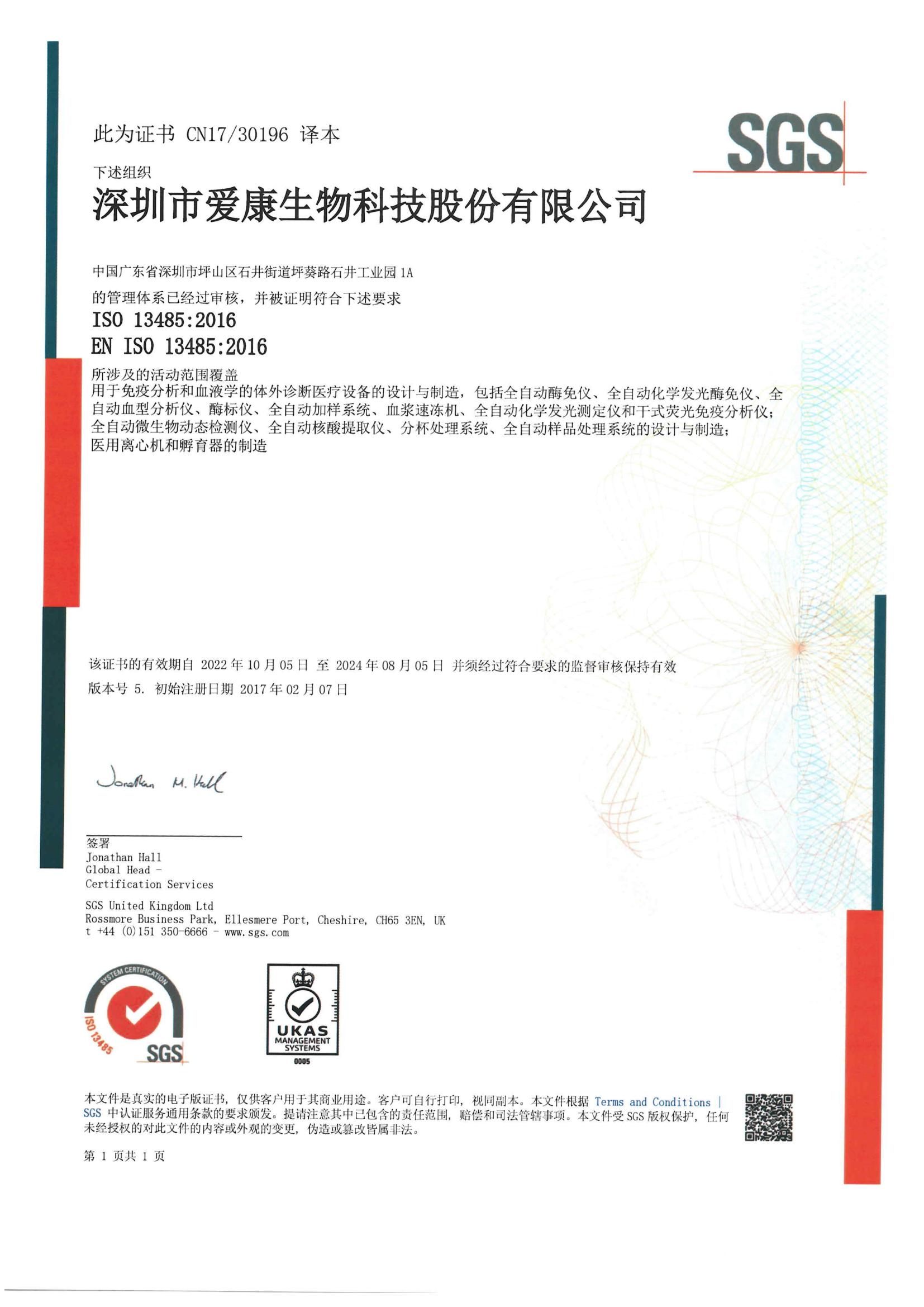 深圳市愛康生物科技股份有限公司成立于2003年,是一家專業(yè)從事醫(yī)療設(shè)備及體外診斷試劑產(chǎn)品研發(fā),集生產(chǎn)、銷售和售后服務于一體的國家高新技術(shù)企業(yè)。愛康生物擁有酶免、血型、化學發(fā)光、POCT四大平臺產(chǎn)品,致力于為醫(yī)院、血站等臨床檢驗機構(gòu)提供優(yōu)質(zhì)的產(chǎn)品及專業(yè)的服務。